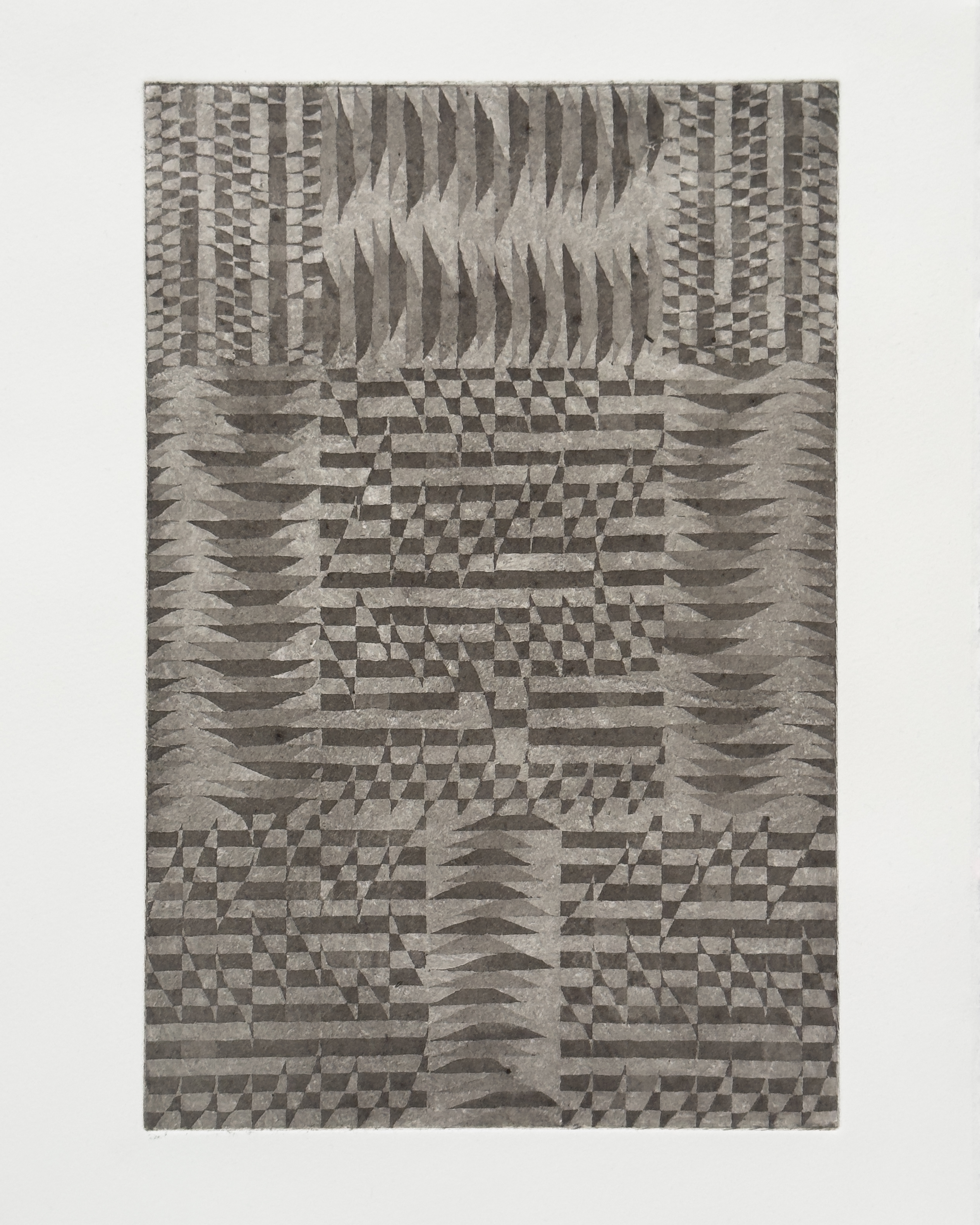 aquatint etching on cotton satin over board, stone, shell, thread